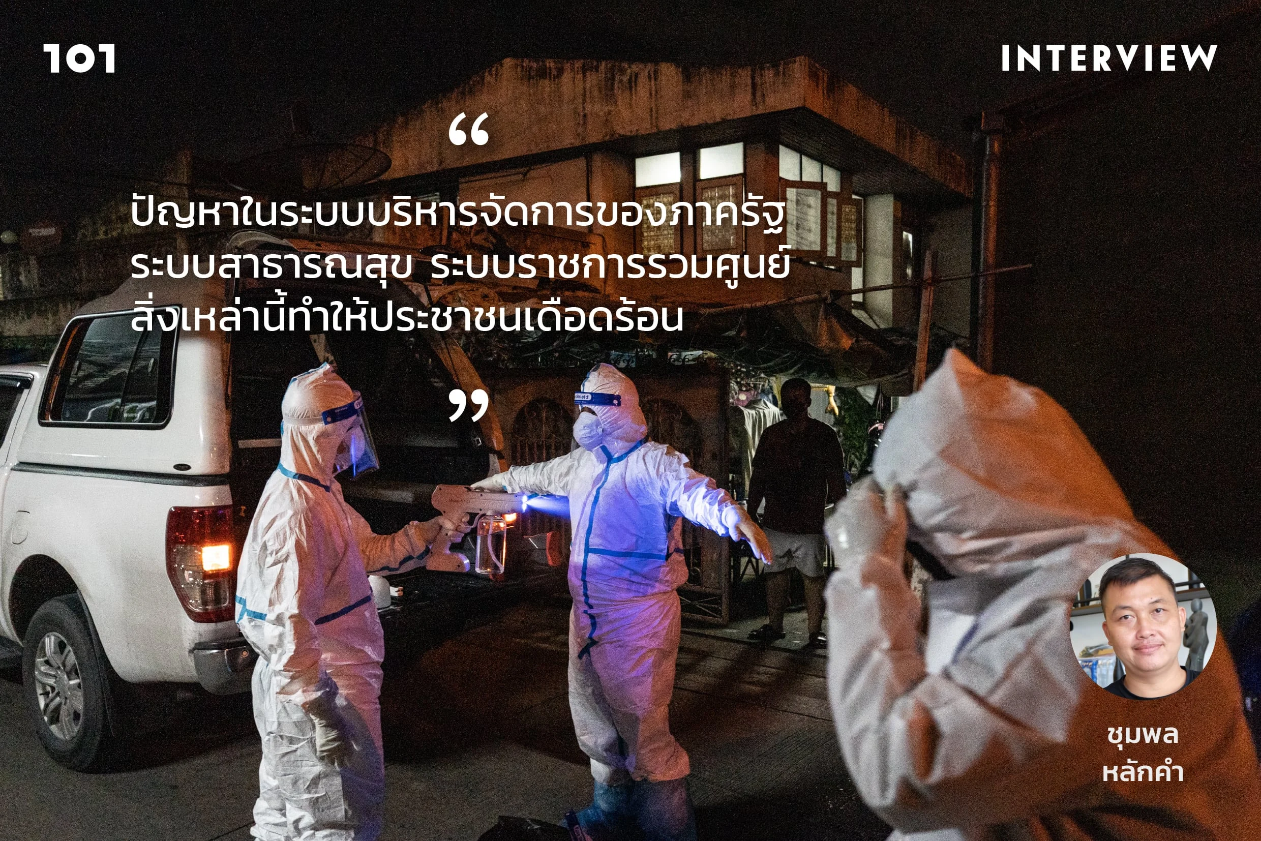 “ผมเรียนจบด้านกฎหมาย ทำงานเกี่ยวกับกฎหมายมาตลอด ไม่นึกว่าจะได้มาทำงานที่ต้องปฐมพยาบาลให้คนป่วย เราเห็นภาพว่าถ้าเราไม่ทำอะไรเลย สถานการณ์คงแย่กว่านี้ ตอนนี้ชาวบ้านไม่มีที่พึ่ง ประชาชนจึงต้องพึ่งประชาชนด้วยกันเอง การทำงานอาสาทำให้เราเห็นปัญหาในระบบบริหารจัดการของภาครัฐ ระบบสาธารณสุข ระบบราชการรวมศูนย์ สิ่งเหล่านี้ทำให้ประชาชนเดือดร้อน ได้รับการบริการที่ล่าช้า ไม่ทันท่วงที จนเกิดการเสียชีวิตหลายกรณีที่เราได้สัมผัสมา